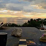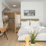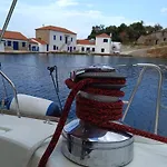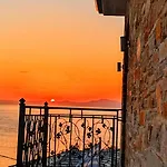 Mindre end 1 km fra Afissos byens center, Captainhouse huser værelser med udsigt over havet.